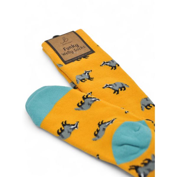 Bartleby Ladies Funky Welly Socks Bold Badger Mustard